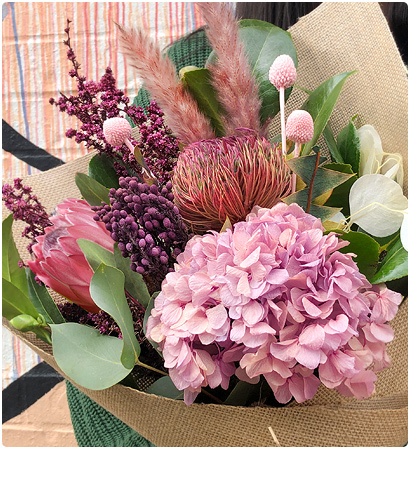 This beauty is all about modern sophistication, featuring hand-selected native, fresh and preserved blooms to create a unique bouquet ready to deliver by express post with its own water source. Staying connected has never been more in reach!